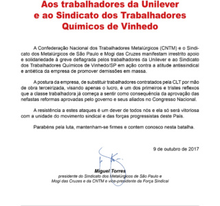 Prezados (as) Companheiros (as), Com a aprovação da reforma trabalhista que entra em vigor a partir de dia 11 de novembro, conquistas históricas da classe trabalhadora serão subtraídas e muitas das suas entidades de representação serão imediatamente aniquiladas. Definitivamente, a situação é extremamente crítica, praticamente uma questão de vida ou morte. Somente uma mobilização ampla […]